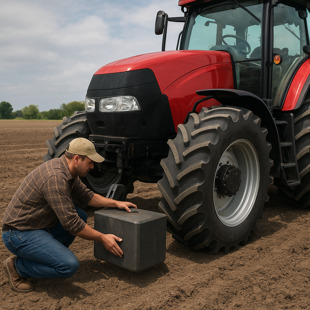 - Rear Ballast: Fluid or cast weights installed in the rear rims or on three-point hitch arms, balancing implements that lift the front end.